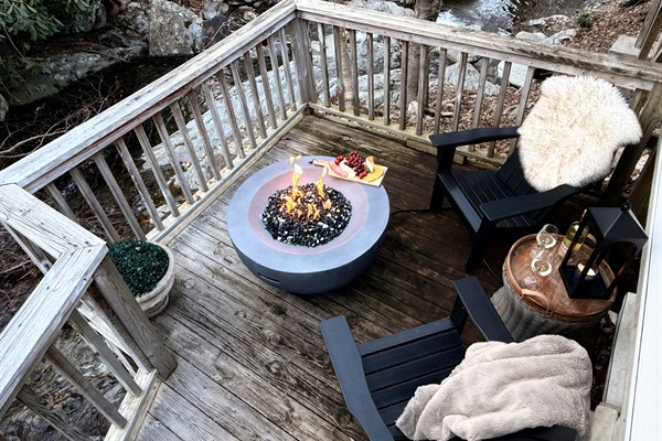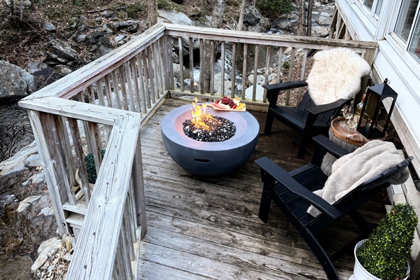 Enjoy the lower deck with gorgeous propane firepit with the creek rushing just feet away!